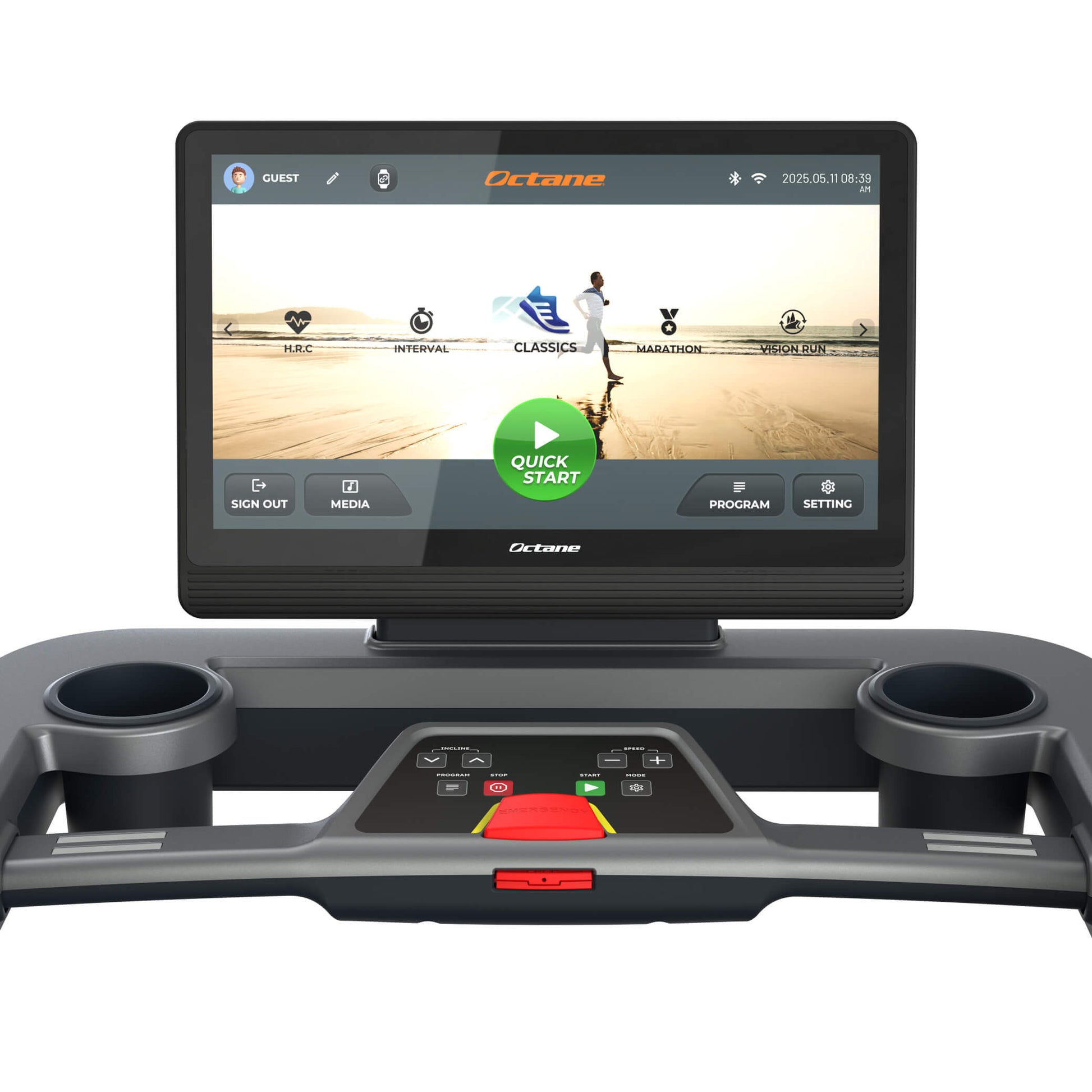 Level up your cardio with the Octane OC220 Treadmill, built to deliver performance, comfort, and entertainment in one sleek machine. Featuring a massive 22” console, the Octane OC220 Treadmill surrounds you with immersive content—making every run, jog, or walk more engaging and motivating.