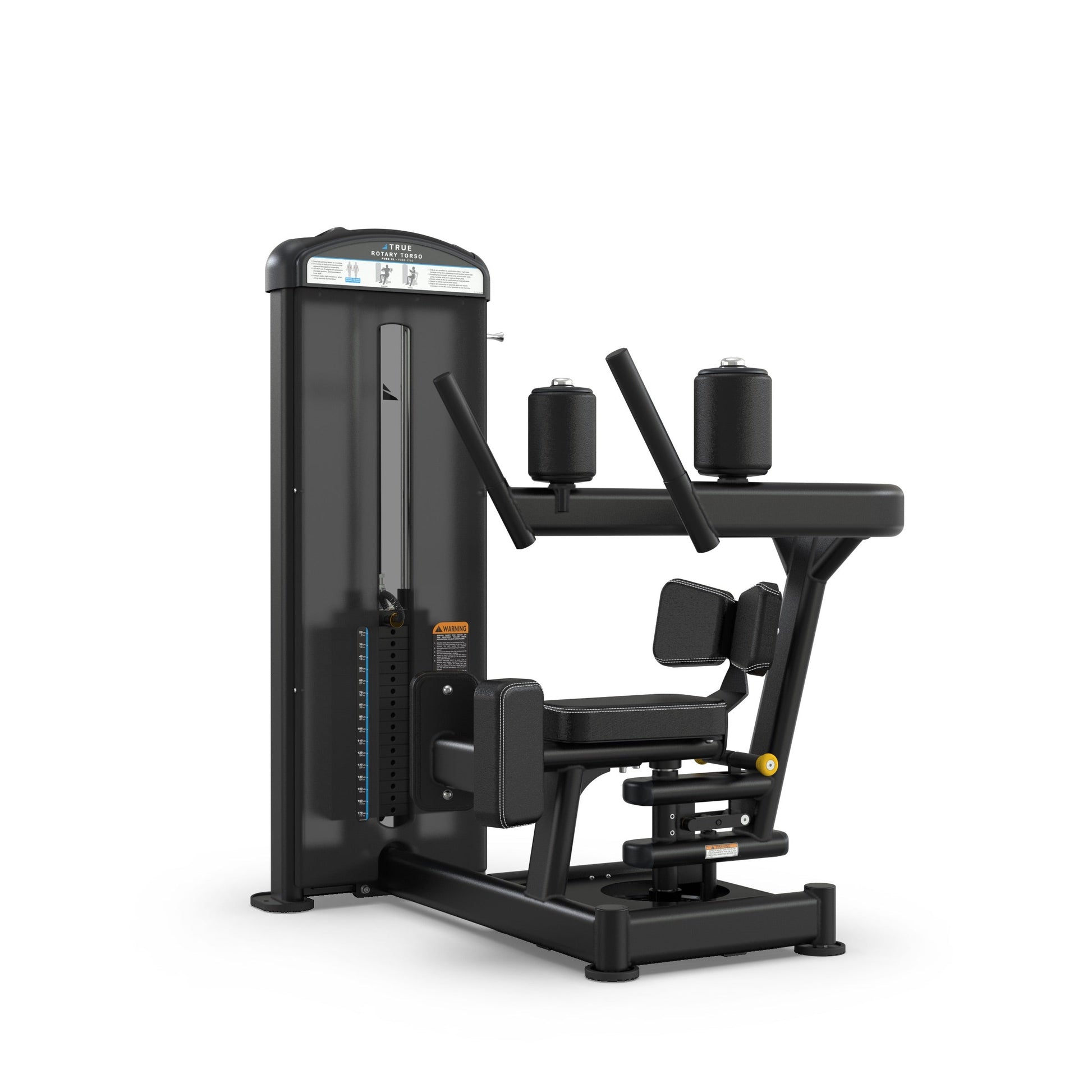 - Angled hip and thigh pads eliminate low body torque and encourage spinal alignment for proper isolation of the torso